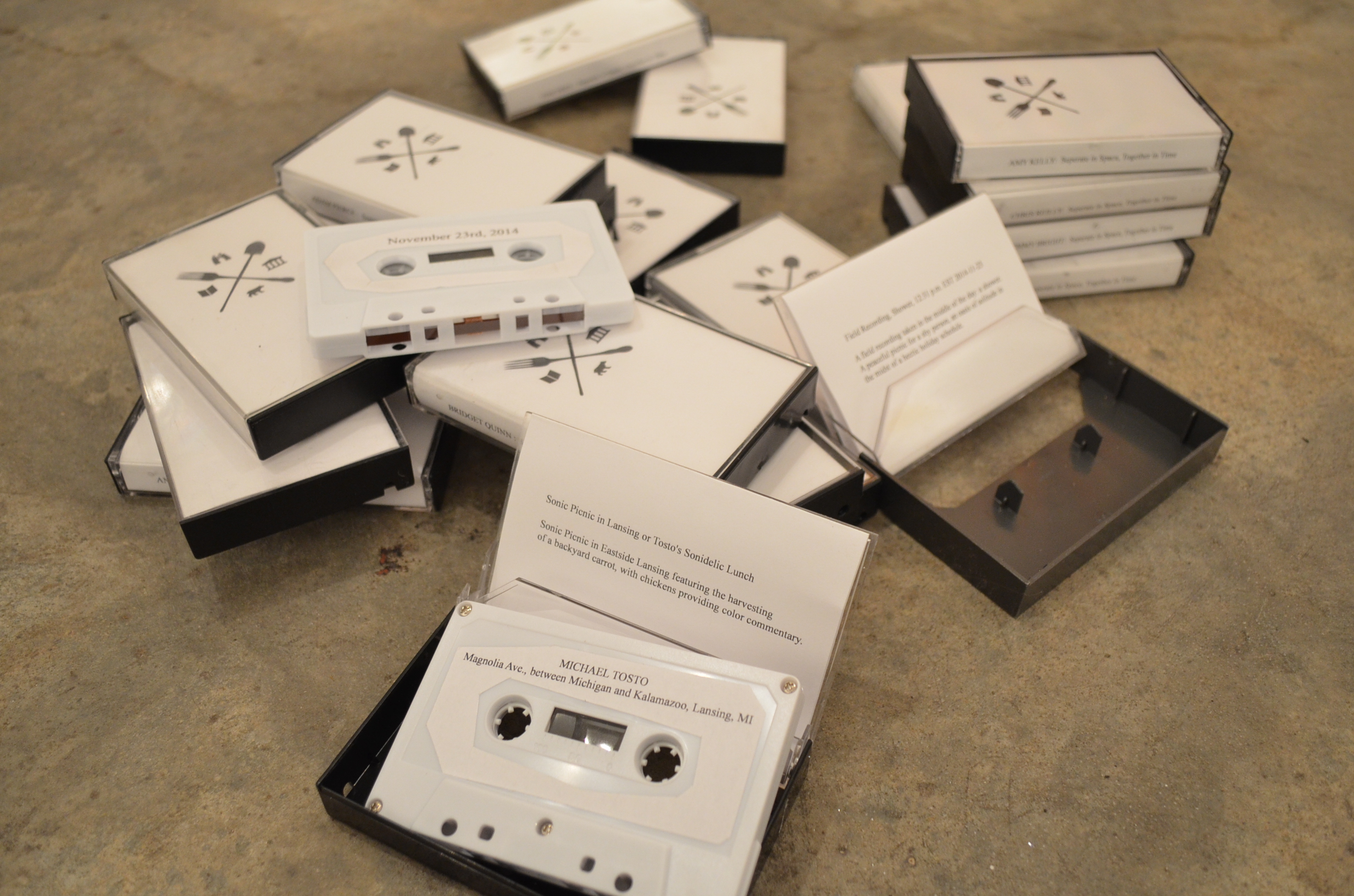 Join us in a basket! Picnic Basket is a 33-minute composition woven of the sounds of 23 solitary picnics that occurred on November 23rd, 2014 separate in space, together in time. The weaver, Emily Gustafson will debut her composition twice (4:00 & 7:30) with live accompaniment by sound artist-musician, Adam Pierce. We invite you to enjoy these foreign and familiar sounds within a changeable landscape of light and shadow.